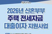 (내포투데이) 당진시는 1월 19일부터 2월 13일까지‘2026년 신혼부부 주택 전세자금 대출이자 지원사업’ 신청자를 모집한다고 16일 밝혔다. 2019년부터 매년 실시하고 있는‘신혼부부 주택 전세자금 대출이자 지원사업’은 신혼부부의 주거비 부담 완화 및 안정된 정주 여건 조성으로 혼인과 저출산 문제를 해결하고, 주거복지 향상을 도모하기 위한 사업이다. 올해는 80가구 지원을 목표로, 전세자금 대출 잔액의 2% 내에서 연 1회 최대 150만 원까지 지원한다. 신청 자격은 공고일(2026.1.12.) 기준 중위소득 180% 이하(2인 기준 7,559,000원)를 충족하여야 하며, 관내 3개월 이상 거주 중인 5년 이내(다자녀인 경우 7년 이내) 혼인신고 한 신혼부부이다. 주택기준은 당진시 관내 주거용 주택이고 금융권 전세자금 대출 용도에‘주택’,‘임차’,‘전세’ 등으로 명기된 경우이며, 일반·신용대출은 제외된다. 신청은 주소지 관할 읍면동 행정복지센터에 방문하면 된다. 제출 서류 등 자세한 사항은 당진시 누리집 고시공고 게시판에서 확인할 수 있다.